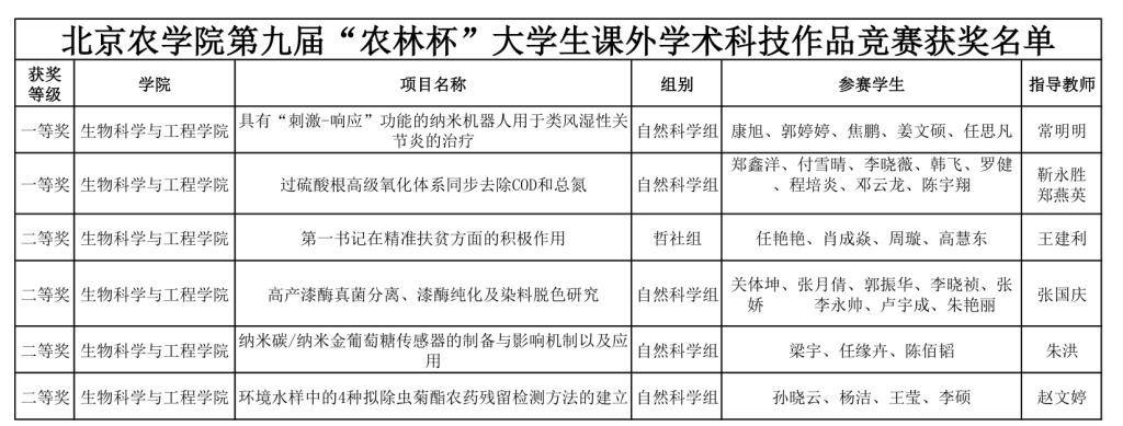 现已公示获奖作品名单。生物学院经学生个人申请,学院选拔,共报送七项作品,其中六项获奖。