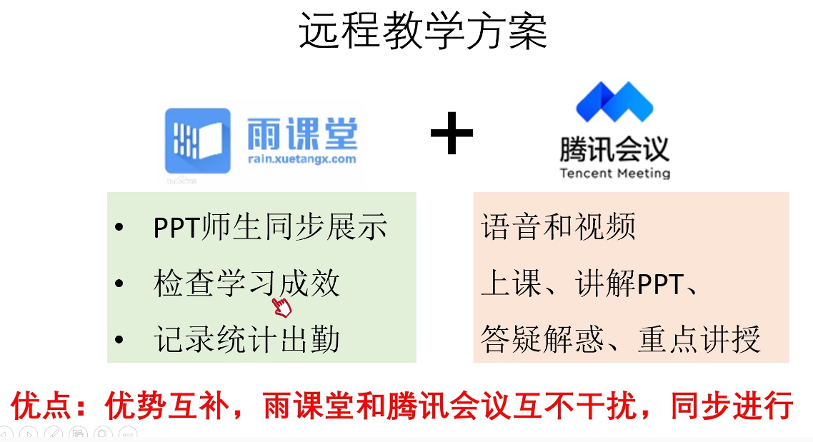 教师们献计献策解难题。因为课程中心负荷过高,导致资源分享和学习记录功能受影响。老师们献计献策,分享自己在其他平台的试用体验。2月27日,学院教学管理委员会召开第二次教学例会,及时总结第一周远程教学工作经验和不足,研究完善网络教学工作措施,3月11日,学院组织了线上教学经验交流研讨会,刘云、杨明峰、赵文婷、贾月慧老师对常见的授课平台首批进行了研究,重点对ZOOM、B站、雨课堂和腾讯会议等平台作了体验评测,并与其他老师积极互动,耐心地推广如何使用ZOOM录播与课程中心结合教学、如何选择学生喜欢的授课方式、雨课堂结合腾讯会议的优势、腾讯会议共享屏幕与课程中心结合使用等技巧。教学督导对学院的线上教学工作给予了肯定,并在如何提高学生专注力和师生互动性方面给老师们提出了值得思考的建议。