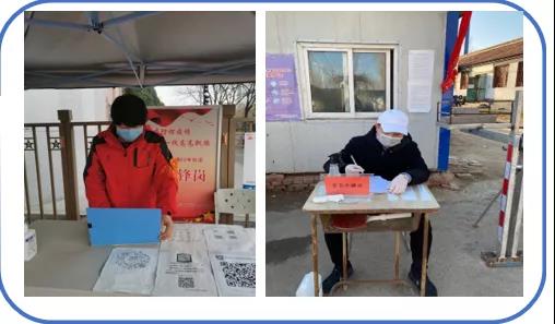 图2孙中华老师(海淀区复兴路22号院社区)和刘杰老师(顺义区大孙各庄西华山村)在疫情期间执勤