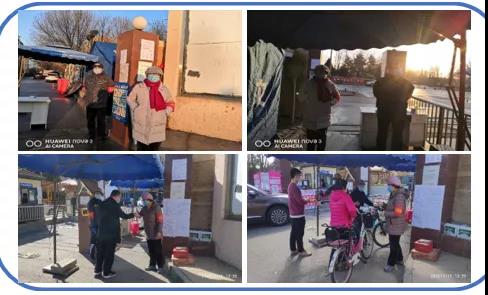 图3贾月慧老师(9728太阳集团家属区)、王敬贤老师(东小口镇流星花园三区)和高凡老师(昌平区回龙观街道金域华府)在疫情期间执勤