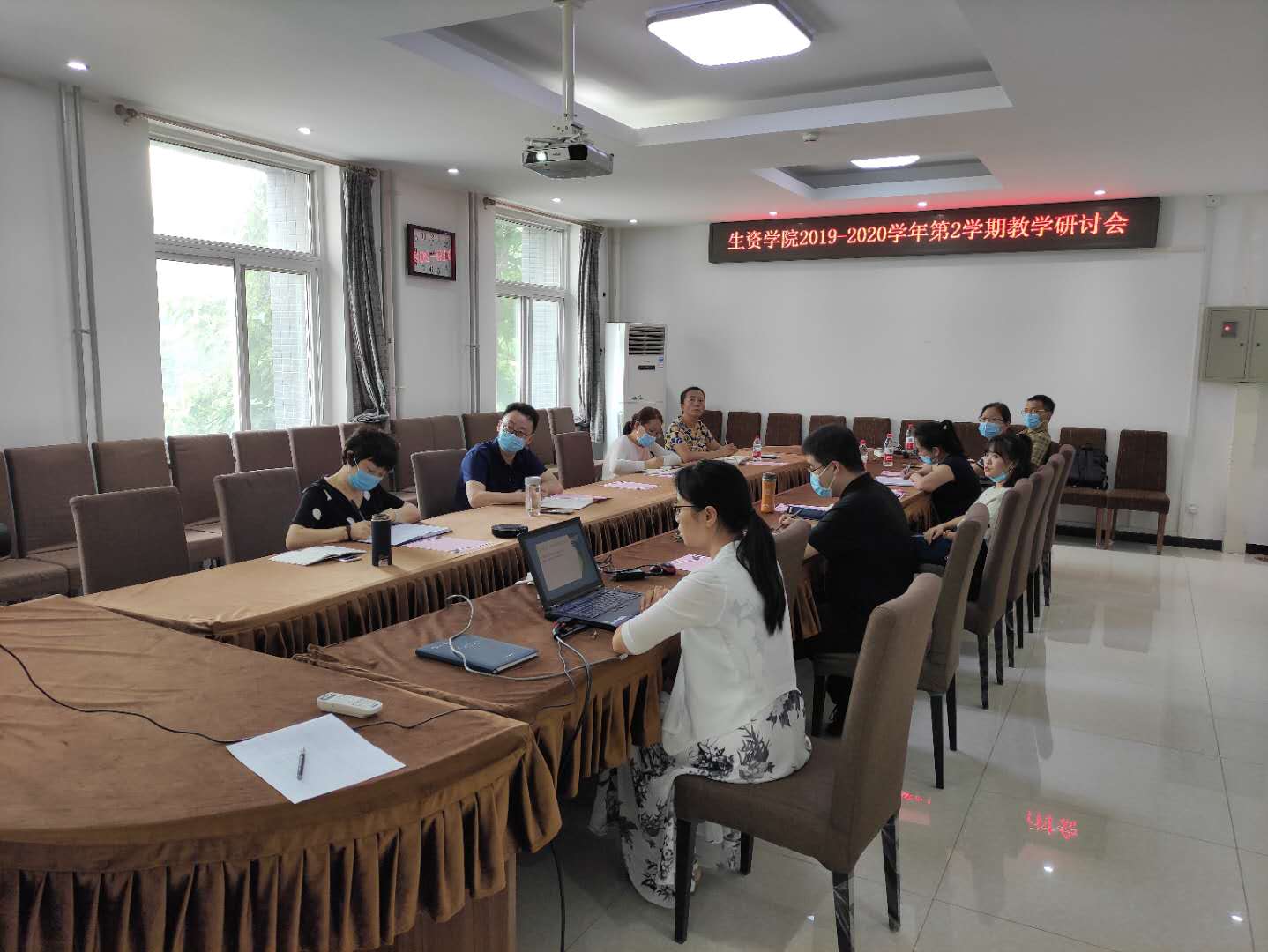 受新冠肺炎疫情的影响,学生和老师不能像以往一样在校园里进行面对面的教学与交流。按照学校的指示与安排,学院率先谋划、精心部署,有序、高效地组织和开展了线上教学,确保了疫情防控和教学工作两手抓、两不误的两促进,为进一步加强学院线上教学组织管理工作,全力保障新学期线上教学质量,2020年7月13日上午,学院以线上线下相结合的形式召开了线上教学工作研讨会。学校教务处处长李奕松、学院党总支书记袁中立、院长马兰青、副院长滑静、尚巧霞、俞涛,教学督导张子安、孙祎振、于同泉,以及全院教职工参加了研讨会。