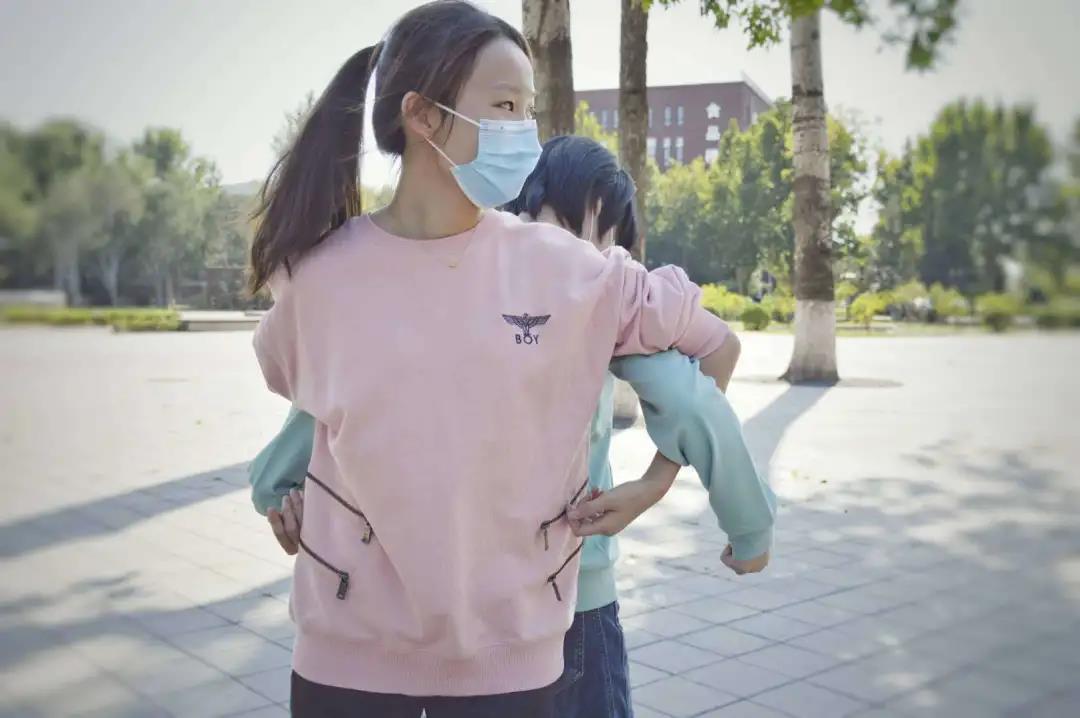 科技楼前,每个班级分为两队进行比赛,两两配合,背夹气球运至终点,终点挤爆气球为胜,大家玩得不亦乐乎!在“嘣嘣嘣”欢乐声中,活动气氛达到了高潮。