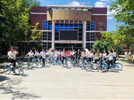 为倡导同学们绿色出行、低碳减排的生活方式,党支部组织开展“绿色校园行”低碳骑行活动。党员和入党积极分子统一身着白色T恤,按照礼堂—一食堂—图书馆—二食堂—动物医院—操场—礼堂的路线进行骑行活动并打卡留念,宣传低碳绿色出行。