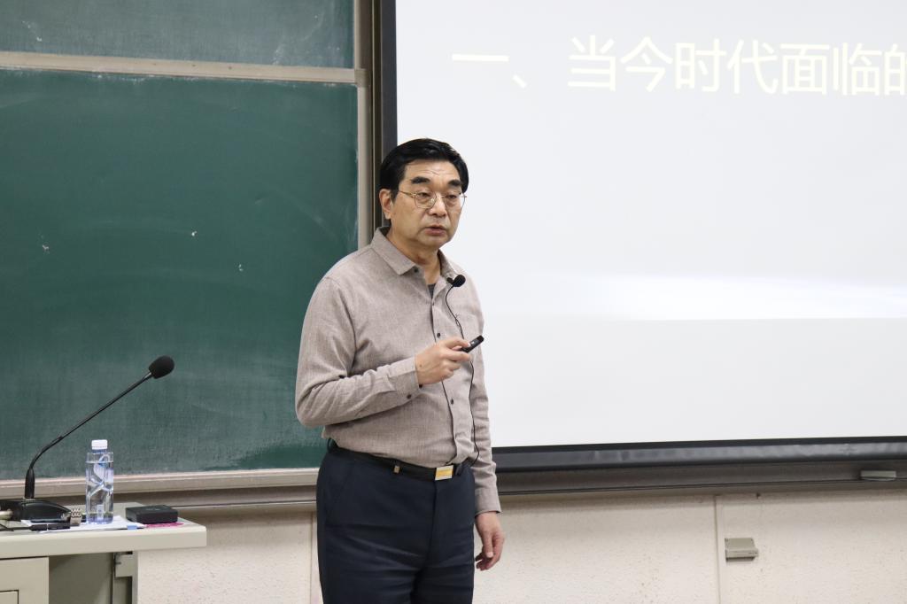 为深入开展党史学习教育,贯彻落实习近平新时代中国特色社会主义思想,提高学生思想政治素质,扎实推进新时代高校思想政治理论课改革创新精神,11月16日晚,9728太阳集团党委书记杨军老师走进生资学院2020级课堂,以《多边主义,世界发展的破局之策》为主题,向植物保护、农业资源与环境专业的学生讲授“形势与政策”课,学院党总支书记袁中立老师、科研副院长尚巧霞老师、党总支副书记俞涛老师参加了学习。