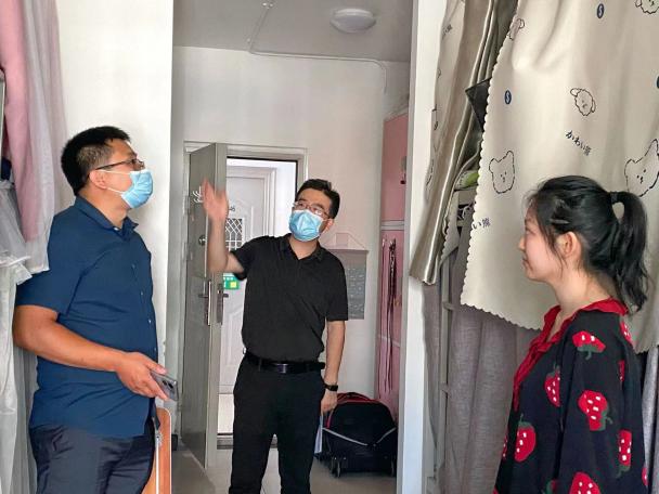 同学们表示,辅导员和班主任到宿舍看望大家,真切感受到了老师对他们的关心关爱,感受到了学院大家庭的温暖,表示一定会严格按照学校疫情防控要求履行好个人责任,把宿舍这个小家环境整理好,让自己的学习生活更加充实,为疫情防控严峻形势下维护学校安全稳定贡献自己的力量。走访中,同学们还纷纷给老师送上祝福,祝老师们教师节快乐!