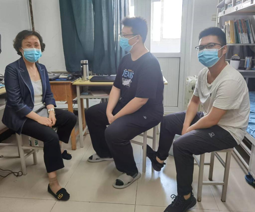 辅导员细心询问了同学们返校后的日常情况,认真听取了学生的想法和诉求,并就相关问题进行了交流,提醒同学们要严格履行个人疫情防控责任,创建整洁文明的宿舍环境,共同维护校园安全稳定,确保同学们身心健康,让家长和老师放心。