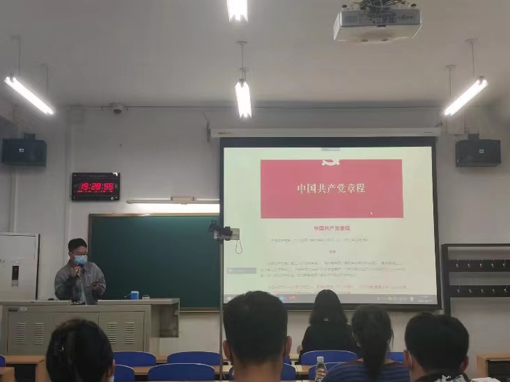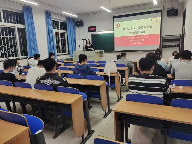 为深入贯彻落实习近平新时代中国特色社会主义思想,引导广大学生党员深刻认识“两个确立”的决定性意义,充分发挥学生党员先锋模范作用,营造喜迎党的二十大浓厚氛围。资环本科生党支部于2022年9月25日晚18:30于教A117开展了以“喜迎二十大、永远跟党走”为主题的党日活动,活动由党支部书记杨雨萍主持,支部全体党员及入党积极分子参加会议。