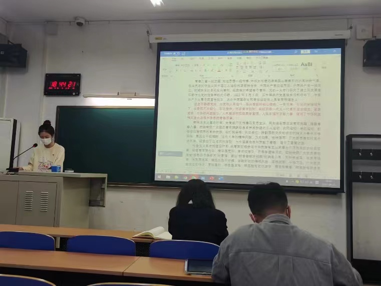 会议伊始,杨雨萍先向大家介绍了围绕喜迎二十大,学校将开展的系列活动,并要求大家积极参加各项活动;其次,由支部党员王天玺带领大家学习了习近平总书记在庆祝中国共产党成立100周年大会上的重要讲话、在庆祝中国共产主义青年团成立100周年大会上的重要讲话、在中国人民大学考察时的重要讲话精神、在省部级主要领导干部专题研讨班上的重要讲话精神以及《习近平谈治国理政》第四卷等内容,支部党员纷纷进行交流讨论。