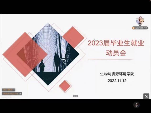 2022年11月12日晚18:30,生资学院召开2023届毕业生就业动员会,2019级全体学生参会,会议由辅导员汪丽主持。