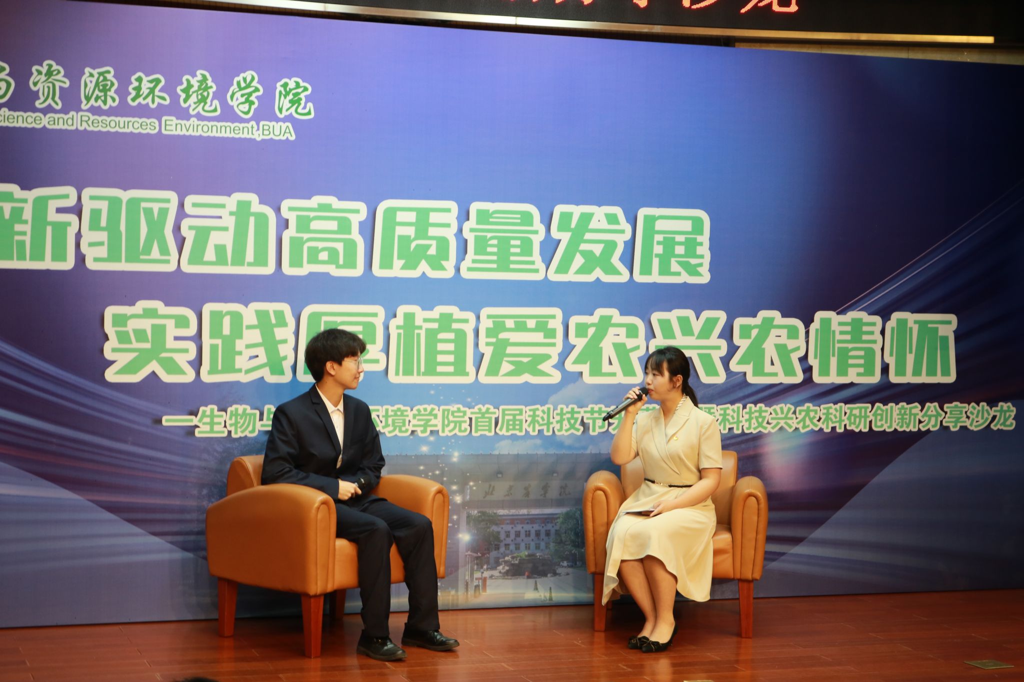 开幕式后,举办了科技兴农科技创新分享沙龙。生资学院5名在乡村振兴、学科竞赛等方面取得优异成绩的学生分享他们的精彩故事 。