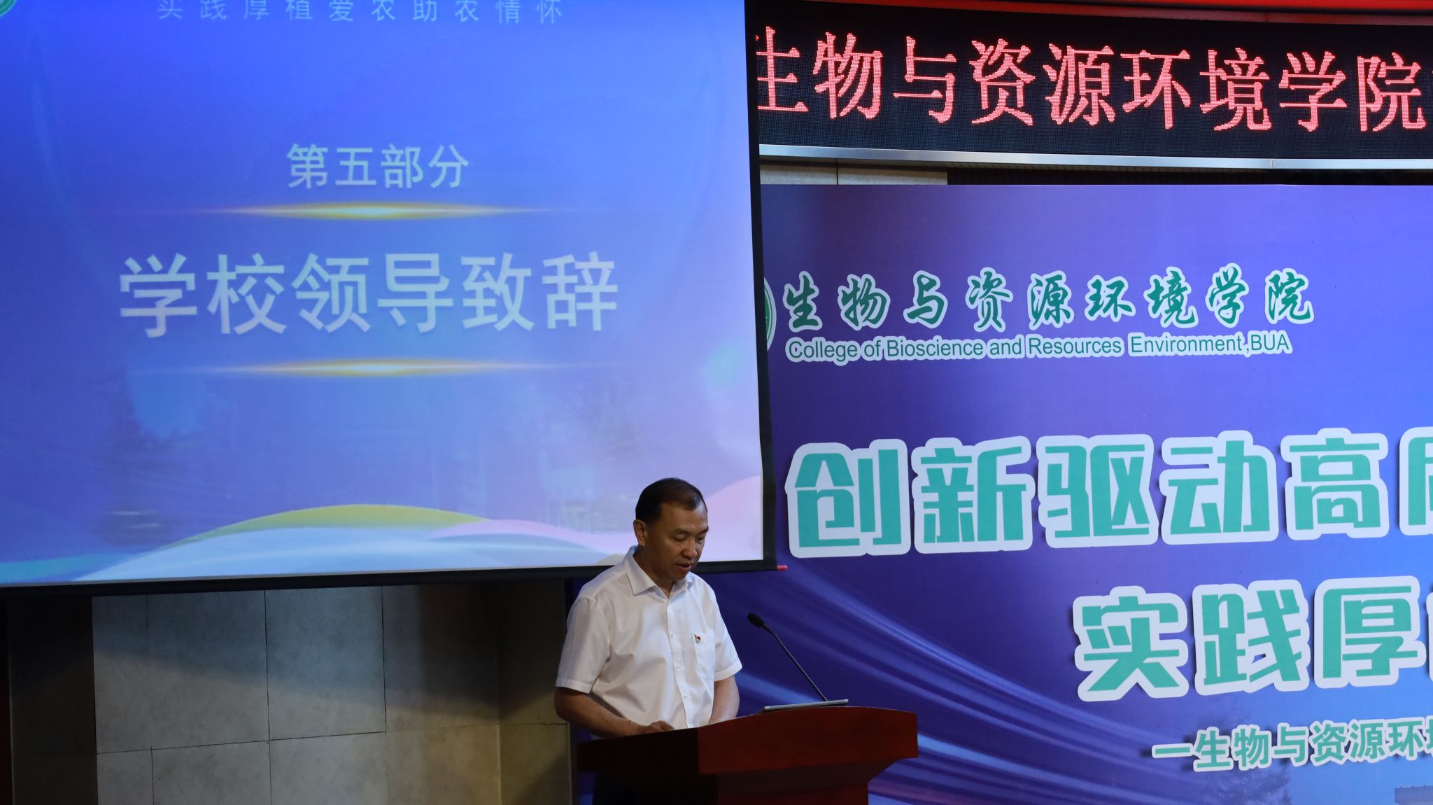 仲丛生在致辞中对生资学院师生在科技创新、科技兴农方面取得的优异成绩给予了充分肯定。指出,生资学院策划举办“创新驱动高质量发展、实践厚植爱农兴农情怀”首届科技节,是贯彻落实党的二十大精神,践行习近平总书记关于科技强国、教育强国和乡村振兴重要论述的有效举措。仲丛生强调,当前学校正在深入开展学习贯彻习近平新时代中国特色社会主义思想主题教育,希望生资学院首届科技节能够办出特色,发挥文化育人功能,引导师生厚植爱农情怀,激发师生从事科技创新和科技兴农工作的主动性,把科技节办成宣传展示学院师生科技创新、科技兴农成果的新平台,办成学校“尚农”校园文化的一项品牌活动,成为生资学院开展主题教育的生动实践。鼓励生资学院师生在科技创新、科技兴农方面不断取得新成绩。