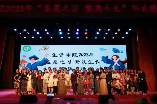 2023年6月11日,太阳成集团tyc9728于礼堂举行“孟夏之日 繁茂生长”主题毕业晚会,各位毕业生与同伴、师长共度了一个难忘的夜晚。生资学院党委书记袁中立,党委副书记、院长尚巧霞,党委副书记、副院长俞涛,副院长赵汗青,团委书记谷薇,毕业生辅导员汪丽以及2023届毕业生出席了活动。