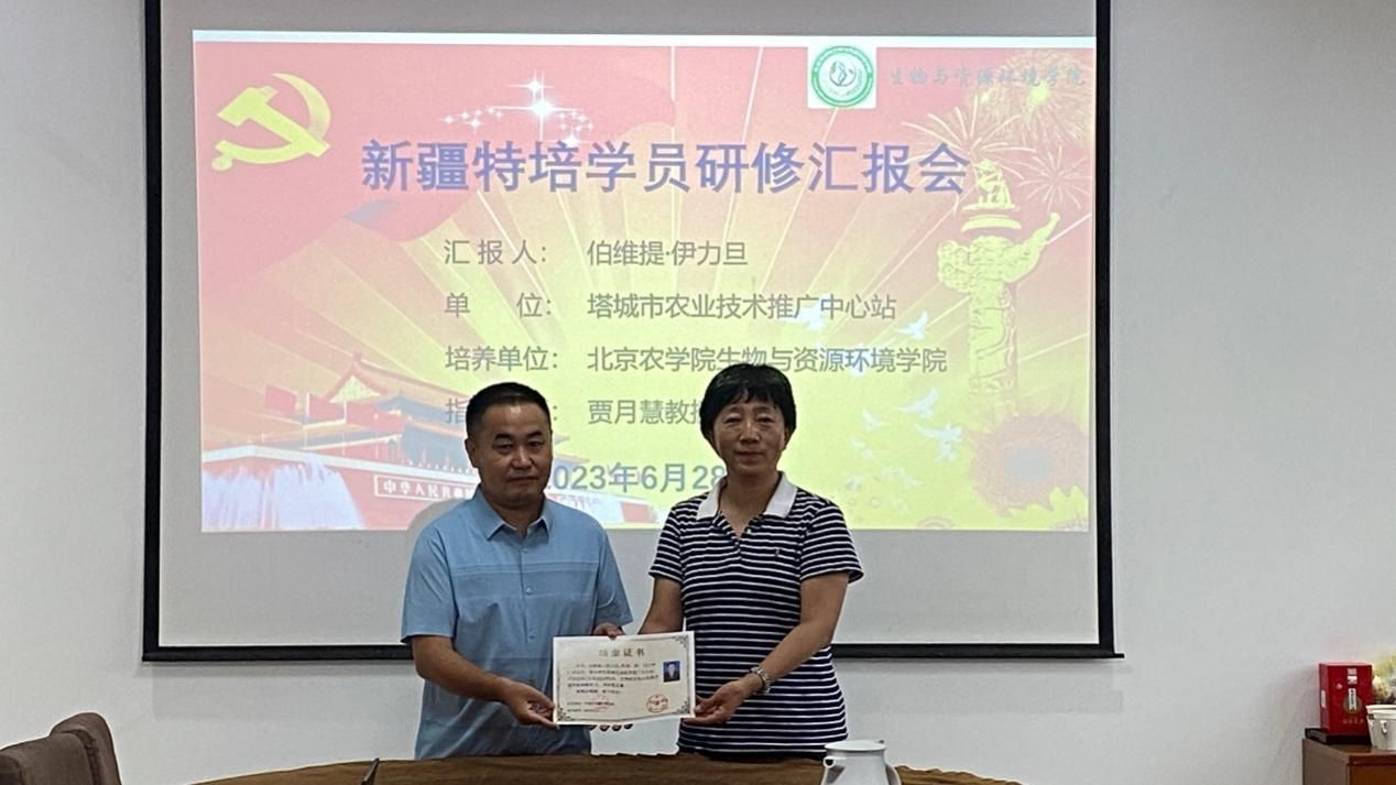 最后,尚巧霞代表学院对“特培”学员伯维提·伊力旦顺利圆满完成进修学习表示热烈的祝贺。希望伯维提能坚定理想信念,回疆后把学到的新知识、新理念应用于工作中,为新疆的乡村振兴尽一份力;希望今后与学院、导师保持联系,开展合作、延续友情。