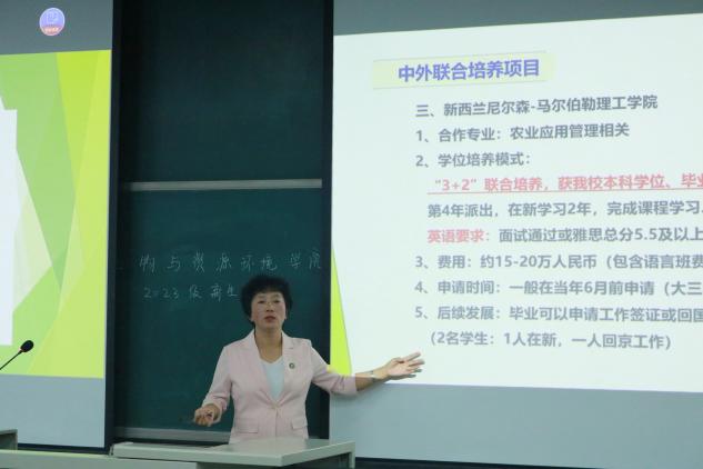 尚巧霞向家长们介绍了专业分类、师资队伍、学生培养等情况,展示了生资学院优秀的科研团队、个性化的实践教学、优质的实验室硬件设备和强大的科研实力,以及学院四个系基本情况、专业发展等,向家长们介绍了各专业就业方向、就业领域及代表性的企事业单位就业岗位等,为家长们答疑解惑。此外,尚巧霞还向新生家长介绍了生资学院的中外联合培养教育与研究生教育,以生动的图表展示学院本科生教育与研究生教育的紧密衔接。