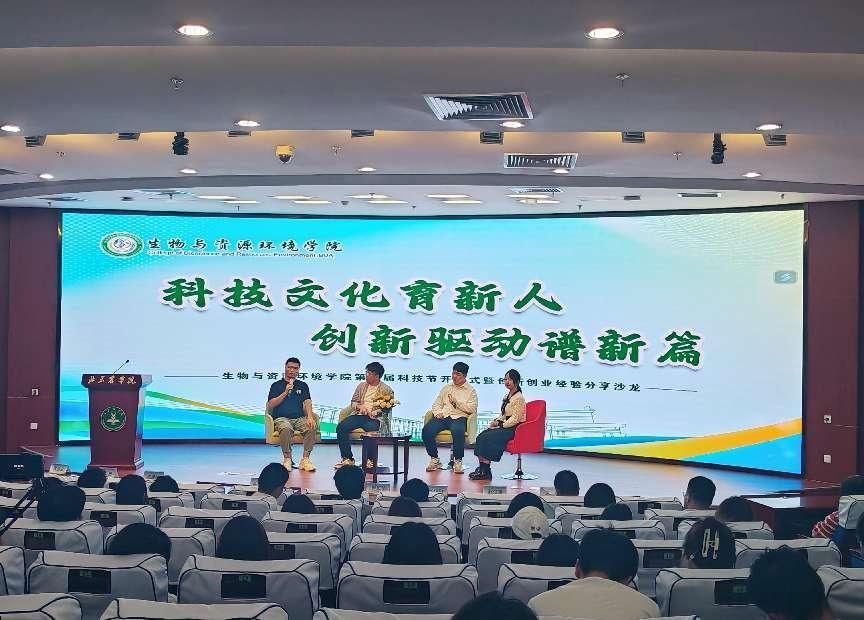 开幕式后,举办了创新创业经验分享沙龙分享沙龙。生资学院6名在乡村振兴、学科竞赛等方面取得优异成绩的学生分享他们的精彩故事。