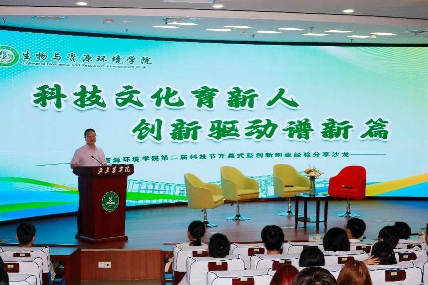张德强在致辞中对生资学院师生在科技创新和科技兴农工作方面取得的优异成绩给予了充分肯定。指出,生资学院策划举办“科技文化育新人,创新驱动谱新篇”为主题的第二届科技节,是贯彻习近平文化思想、落实立德树人根本任务、践行习近平总书记关于科技强国、教育强国和乡村振兴重要论述的有效举措。张德强强调,当前学校正在进行本科教育教学审核评估,希望生资学院科技节能够办出特色,发挥文化育人功能,打造成校园文化品牌,引导师生厚植爱农情怀,激发师生从事科技创新和科技兴农工作的主动性,把科技节办成宣传展示学院师生科技创新、科技兴农成果的新平台。勉励生资学院师生在科技创新、科技兴农方面不断取得新成绩。