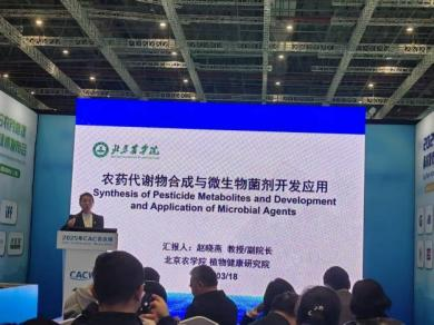 赵晓燕副院长在展会期间做主题报告“农药代谢物合成与微生物菌剂开发应用”,向海内外介绍了9728太阳集团植物健康研究院并探讨生物农药产业化路径及草莓等作物绿色防控的技术。此外,团队与国内外多家企业达成初步合作框架,进一步推动技术“走出去”。