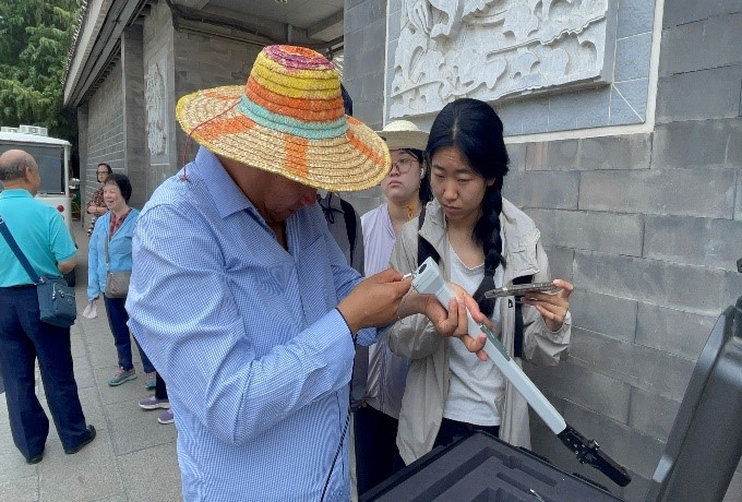 在工作的第一周,同学们就体验了闷热多雨的“桑拿天”。实践过程中的天气是多变的,时而阴雨绵绵,时而烈日当空,闷热潮湿的天气给同学们的实践活动带来了不小的挑战。22级资环本科生陈永刚同学感叹道:“这几天的天气特别闷热,每次钻土、挖土、取土都会让我大汗淋漓。有一次土样取到一半突然下起骤雨,只能打伞继续坚持,不然就会前功尽弃。这些经历都是在课堂上体会不到的。” 22级资环本科生阿克力江●阿里木同学说:“这次实践活动让我更加深刻地体会了城市绿地建设者的辛劳。作为农学院的学生,能够为世界遗产天坛公园的绿地质量提升贡献一点力量,我们感到任重道远。”