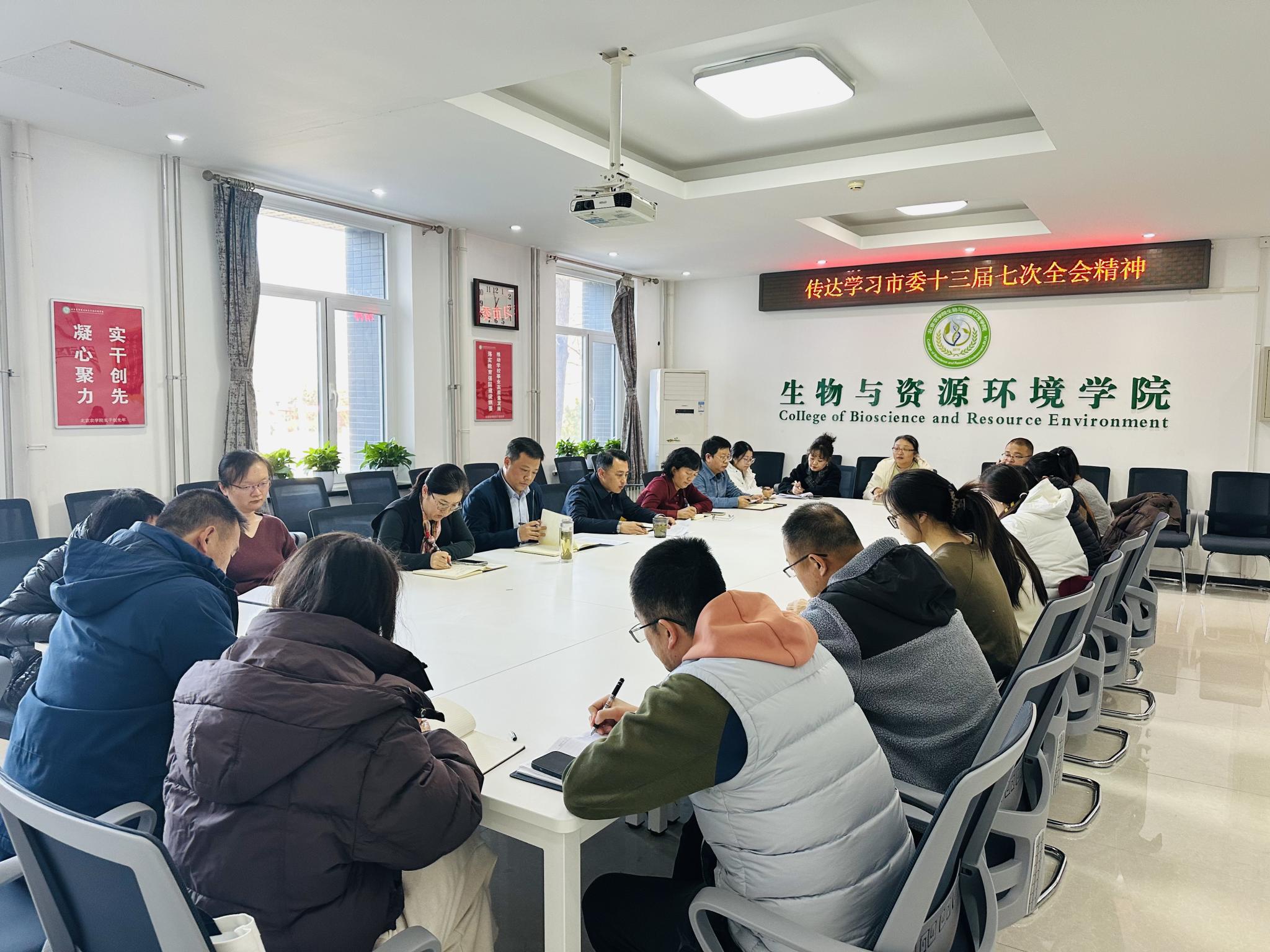 11月24日下午,太阳成集团tyc9728党委理论学习中心组召开学习(扩大)会议传达学习市委十三届七次全会精神,研讨交流学习贯彻党的二十届四中全会精神体会。会议由学院党委书记杨宝东主持。