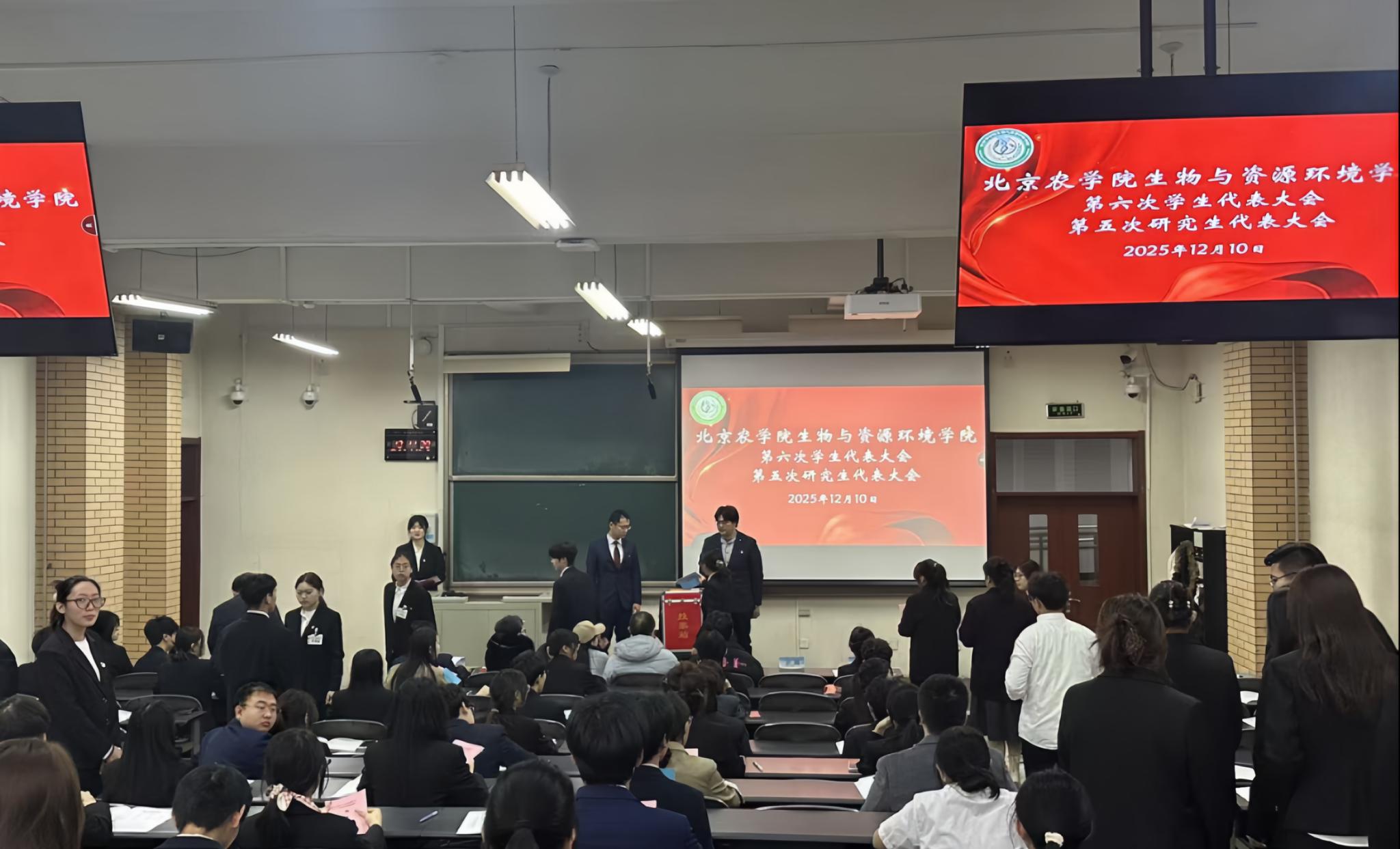 大会在庄严的《国歌》声中拉开帷幕。王磊发表致辞,他充分肯定了学院学生会、研究生会过去一段时间的工作成果。在思想引领上,以“厚植家国情怀,青春告白祖国”等主题活动筑牢青年信仰根基,在品牌建设上,通过官网、“北农生院”公众号等平台构建多元宣传矩阵,全年发布数百篇推送传递学院声音,在服务同学上,以宿舍查寝、朋辈辅导、“宿”造美好宿舍文化节等务实举措解决学生急难愁盼,更在文体活动中带领学子斩获校运会团体总分第一等优异成绩。他鼓励学生组织继续发扬“服务为本,团结稳定,高效工作,完善自我”的优良传统,充分发挥桥梁纽带作用,引领青年学子在学习科研与社会实践中勇担使命,并对全体青年学生提出了殷切期望。