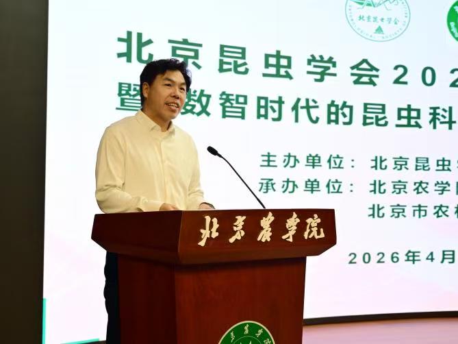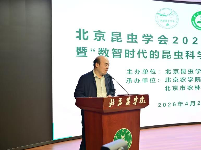 北京昆虫学会挂靠单位北京市农林科学院植物保护研究所副所长赵尔成随后致辞。他回顾了研究所与北京昆虫学会的长期合作历程,肯定了学会在推动首都昆虫学研究、人才培养与科技服务中的重要作用,并表示将继续全力支持学会各项工作,共同为首都农林科技事业发展贡献力量。