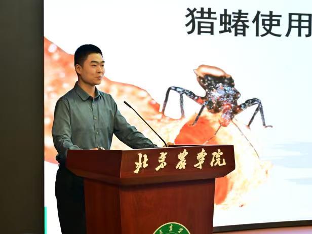 中国农业大学博士生、青年优秀论文特等奖获得者陈兆洋分享了《猎蝽使用工具诱捕无刺蜂》的研究成果,以生动有趣的案例展现了昆虫行为学研究的独特魅力,彰显了青年学者的创新思维与探索精神。