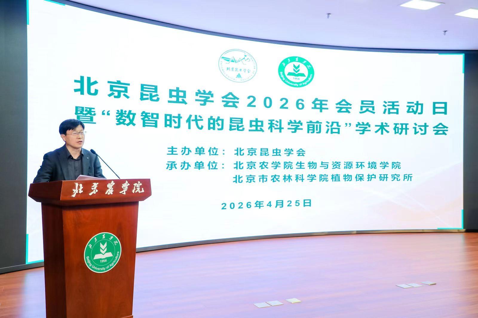 4月25日,北京昆虫学会2026年会员活动日暨“数智时代的昆虫科学前沿”学术研讨会在我校图书馆报告厅隆重召开。本次活动由北京昆虫学会主办,太阳成集团tyc9728、北京市农林科学院植物保护研究所联合承办。中国农业科学院原院长、中国工程院吴孔明院士,北京昆虫学会名誉理事长张芝利,北京科技社团服务中心王掬周,北京市农林科学院植物保护研究所副所长赵尔成,9728太阳集团党委常委、副院长曹志军,太阳成集团tyc9728党委书记杨宝东、院长尚巧霞等领导和嘉宾应邀出席了本次活动,共计约280余名学会会员参会。