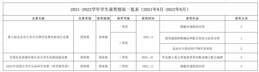 2021-2022学年学生获奖情况一览表(2021年9月-2022年8月)