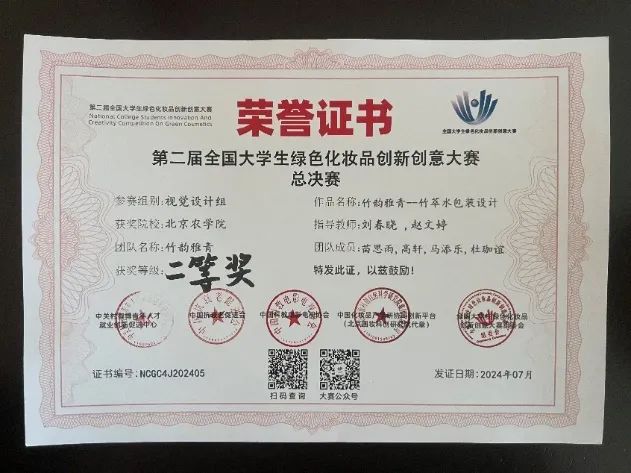 第二届全国大学生绿色化妆品创新创意大赛总决赛 生资学院参赛队伍荣获二等奖