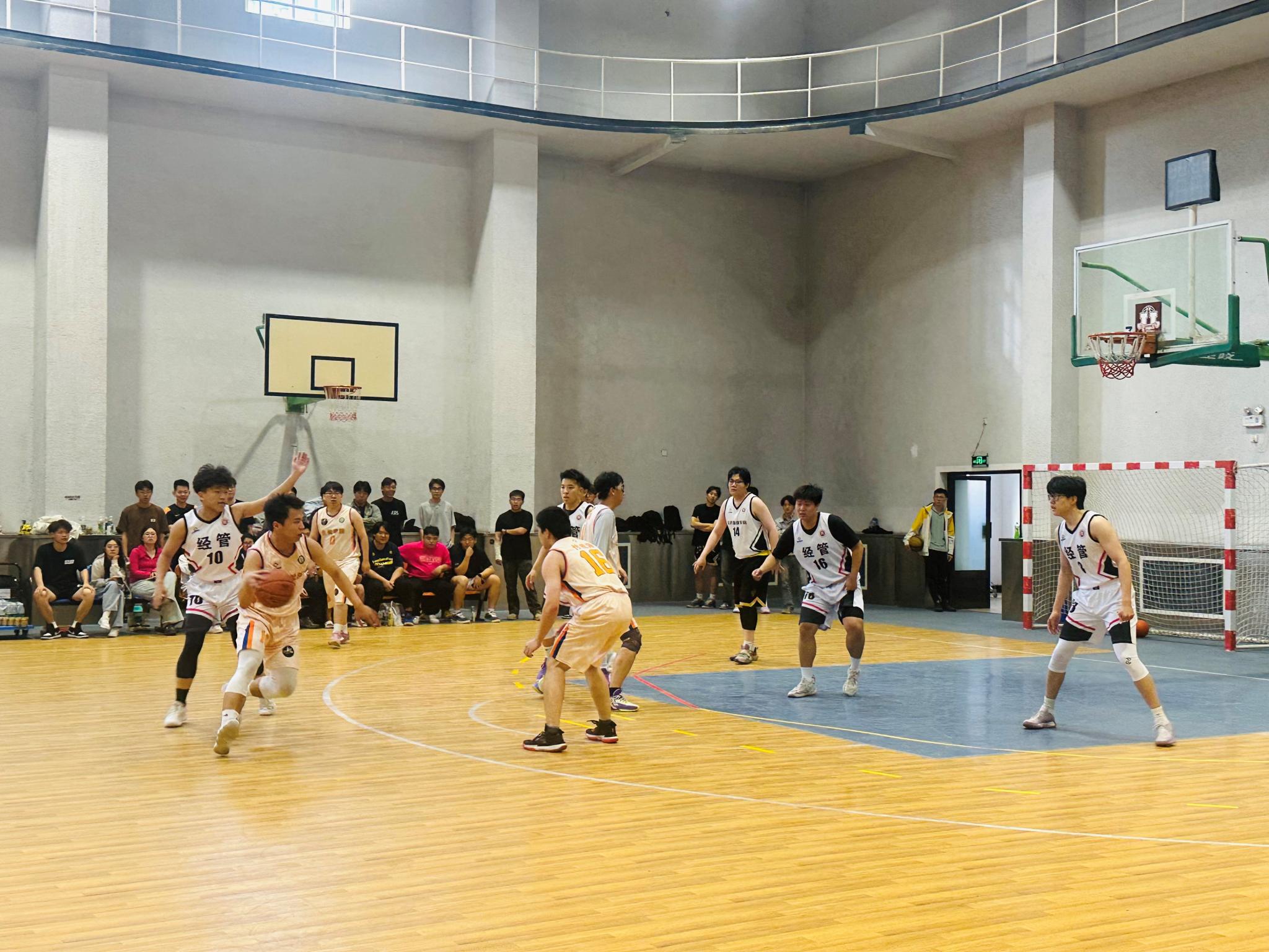 赛场上生资学院篮球队的队员们个个斗志昂扬活力四射小组赛阶段他们稳扎稳打每一场比赛都全力以赴凭借扎实的基本功和默契的团队配合面对实力强劲的对手队员们毫不退缩在攻防两端都展现出了极高的水准进攻时他们灵活跑位巧妙传球一次次撕开对手防线完成精彩得分防守时他们紧密协作积极拼抢让对手难以找到突破口