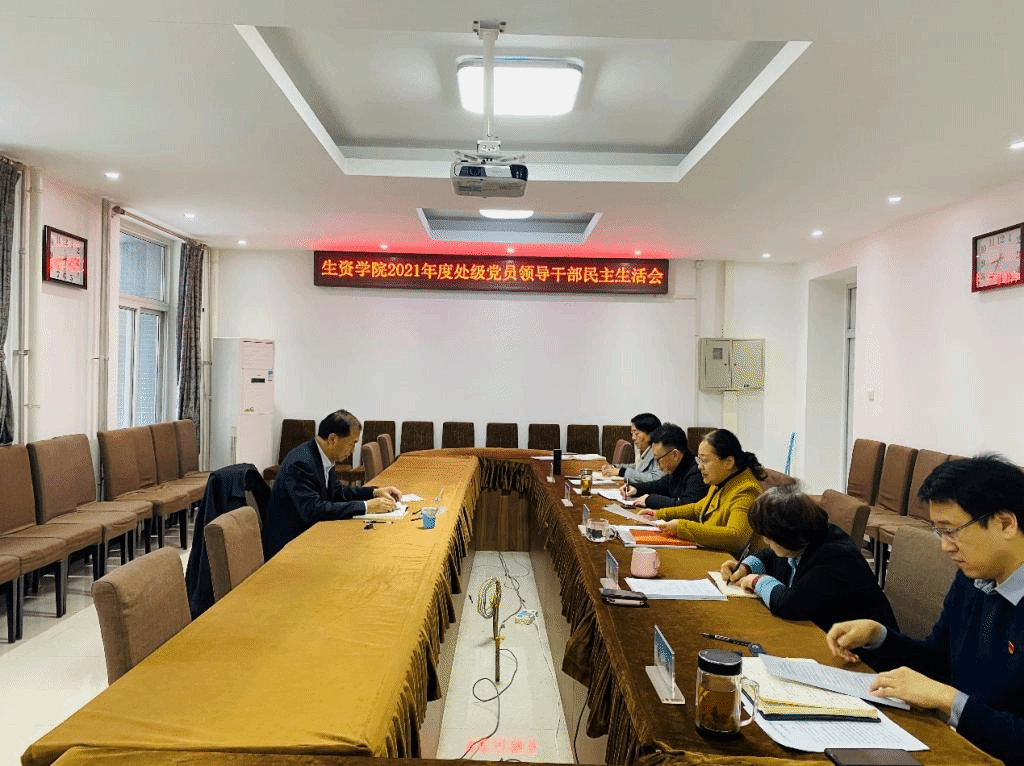 1月21日上午,太阳成集团tyc9728召开2021年度处级党员领导干部党史学习教育专题民主生活会。学校党委副书记仲丛生到会指导,学院领导班子全体成员参会,会议由生资学院党总支书记袁中立主持。