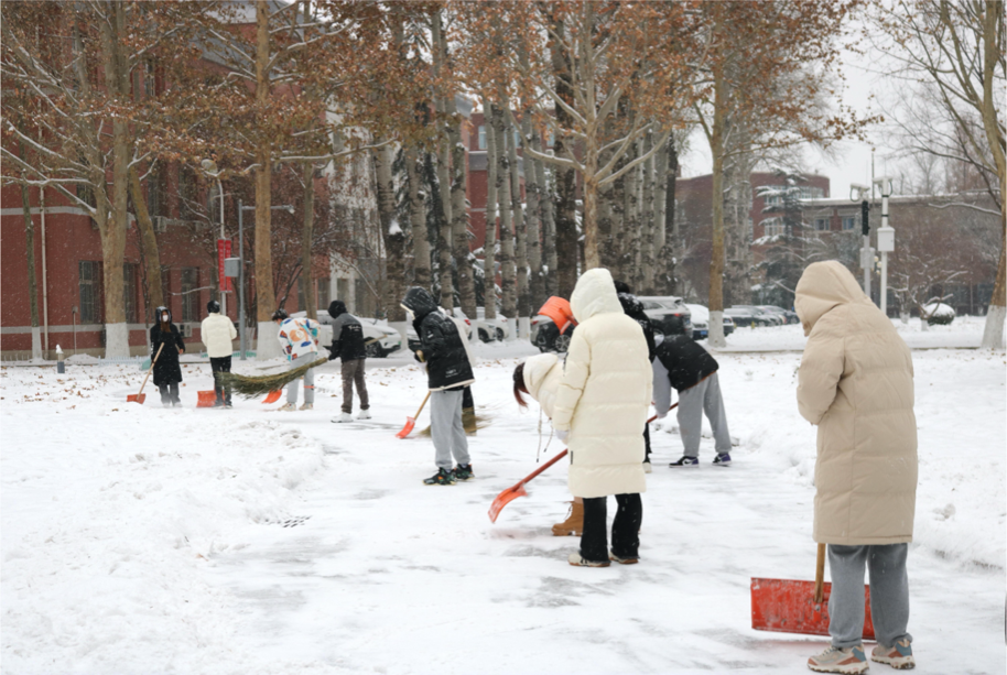 在生资学院党委的领导下,全体师生以雪为令、即下即清,积极开展扫雪铲冰活动,获得了良好的成效,以实际行动保障广大师生的出行安全。本次志愿活动作为劳动教育重要的一环,让师生共上一堂生动的劳动教育课,充分体现三全育人、五育并举的重要教育理念。同时,以高效的实际行动诠释了奉献、互助、友爱、和谐的志愿服务精神,为全体师生清扫出了一条“平安路”、“舒心路”、“幸福路”。