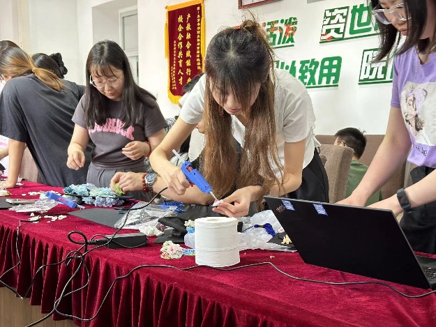 活动伊始,申维维老师给同学们介绍了簪花学位帽的制作方法,并结合所学专业知识让同学们了解到簪花活动对于促进心理健康的重要作用。随后,同学们以帽为“纸”,以花为“笔”,将朴素的学士帽点缀得五彩斑斓,一顶顶独一无二、“帽”美如花的学位帽展现在大家面前。