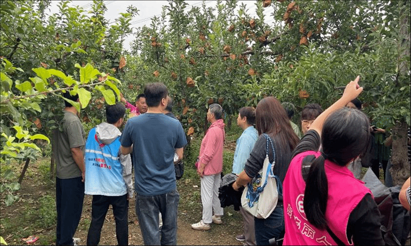 活动结束,果农们田间实际生产中遇到的问题得到了解决,社区志愿者们也纷纷感叹,原来一只小小的苹果从果园到果盘经历了这么多过程,从选种到管理最后到我们的餐桌。我们的研究生党员在协助合作社做好培训相关工作的同时,也真正见识到了课本知识在实际生产中的应用,例如通过压枝的方法解决顶端优势、利用套袋技术提高水果品质等等,激发了研究生对专业学习研究的兴趣。