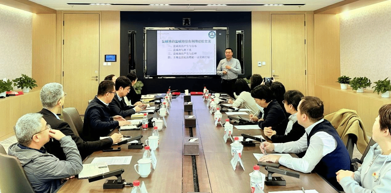 首先,中化环境环境修复党总支书记曲风臣带领学院师生参观了中化环境企业展厅,介绍了中化环境业务范围和已有成果。随后双方进行了座谈交流。太阳成集团tyc9728院长尚巧霞教授向企业介绍了学院的专业建设、科研团队和平台。植物健康研究院副院长赵晓燕教授介绍了植物健康研究院的研究进展和方向。资源与环境系石生伟副教授就盐碱地综合利用经验和企业技术人员进行了汇报交流。曲风臣总经理介绍了公司的基本情况,特别介绍了公司围绕盐碱地科学利用技术与模式创新、产业布局和平台打造方面的工作情况,并提出了目前公司在盐碱地综合利用中对相关技术的需求。尚巧霞教授表示,中化环境企业平台高、定位准,与生资学院科研团队的研究方向具有很高的契合度,双方在党建共建、人才培养、土壤改良科研合作和技术研发方面具有很大的合作空间。
