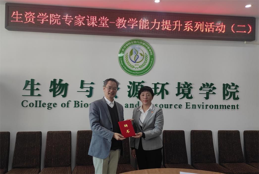 生资学院领导班子成员、教学指导委员成员、系主任、教师党支部书记及青年教师参加专家课堂活动,院长尚巧霞为彩万志教授颁发了太阳成集团tyc9728“专家课堂——教师教学能力提升特聘教授”聘书。