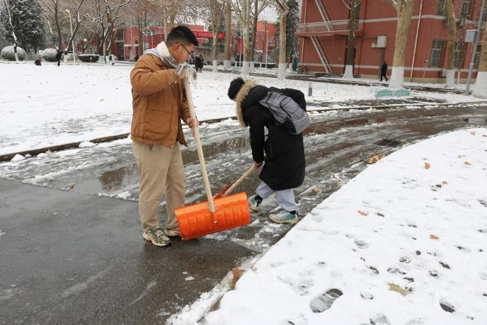 在志愿者们不懈的努力下,路面积雪结冰的情况得到明显改善,确保了通行安全。志愿者们用爱心与热心让每一位进出生资楼的师生得到了切实的便利。一片雪白的晶莹世界中,处处都是奋力除雪的身影,志愿者辛勤为大家服务的身影成为一道靓丽的风景线,团结与凝聚的力量让这个冬日格外温暖。