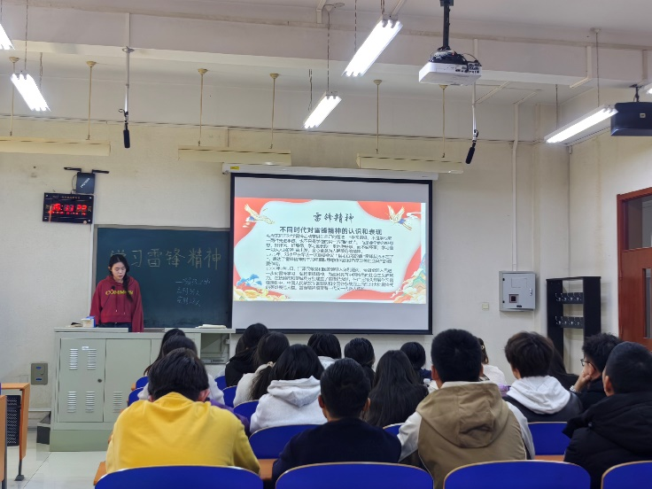 团支书通过两位扎根基层大学生深耕雷锋精神,激励同学们要以他们为榜样。通过这次活动,同学们积极参与并且从中汲取力量。坚定理想信念,发扬艰苦奋斗的精神,做乐于奉献,积极向上的新时代青年。