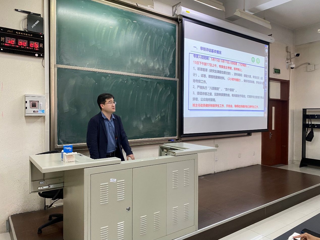 5月8日中午,我院召开本科教育教学审核评估迎评工作动员部署会,学院领导、全体教职员工参会。会上,教学副院长赵汗青对上一阶段的迎评工作进行了总结,再次对学院《关于实施本科教育教学审核评估期间“八项规定”的通知》进行了强调,进一步明确了专家入校后工作的具体安排。