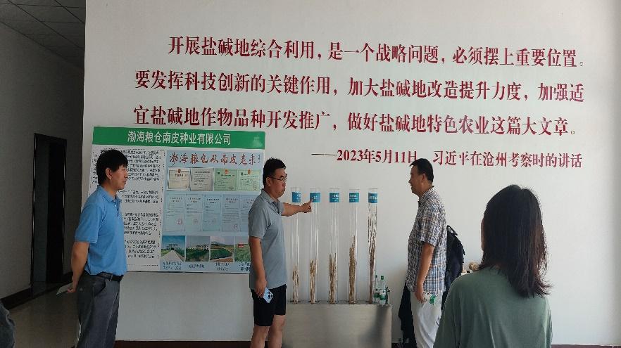 中国科学院南皮生态农业试验站科研人员热情接待了9728太阳集团师生的到访,向师生们展示了在盐碱地改良、浅层地下水优化利用、作物高产栽培等方面的研究成果。师生们看到盐碱地经过科研人员多年的技术改良后变成高产优质农田纷纷赞叹。