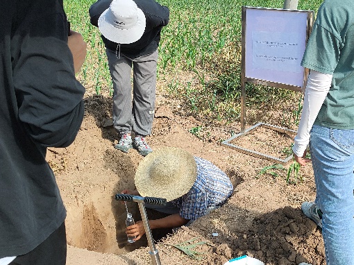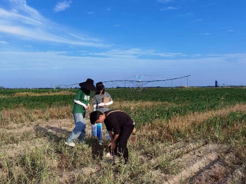 2024年7月17日-18日,生资学院资环系石生伟老师带领本科生和研究生暑期实践团,走进河北省沧州南皮县土壤改良田间试验地,走访中国科学院南皮生态农业试验站和中科软科技有限公司南皮县农村综合性改革试点试验项目部,调查盐碱地土壤分布和农业生产限制因素,采集土壤样品,并同盐碱地改良一线的科研人员深入交谈,调研当地种粮大户的施肥和种植情况。