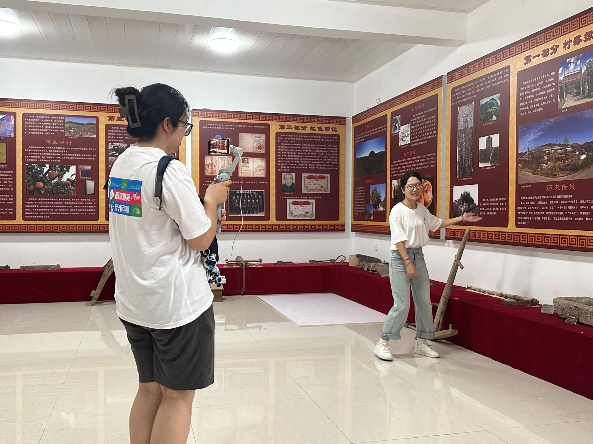 随后,实践团对村乡情史馆进行讲解视频录制,通过视频录制将茅山后村的历史与发展以生动、直观的形式再度呈现出来,不仅是对茅山后村佛见喜梨历史渊源的一种创新性保护与开发,更是对红色文化传承与弘扬的一种积极探索和实践。