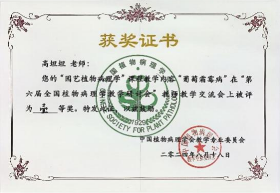 来自15所高等农林院校的31名青年教师代表参加了教师教学基本功交流会。植保系青年教师高坦坦以“葡萄霜霉病”作为教学展示,获得了教师教学基本功比赛一等奖。