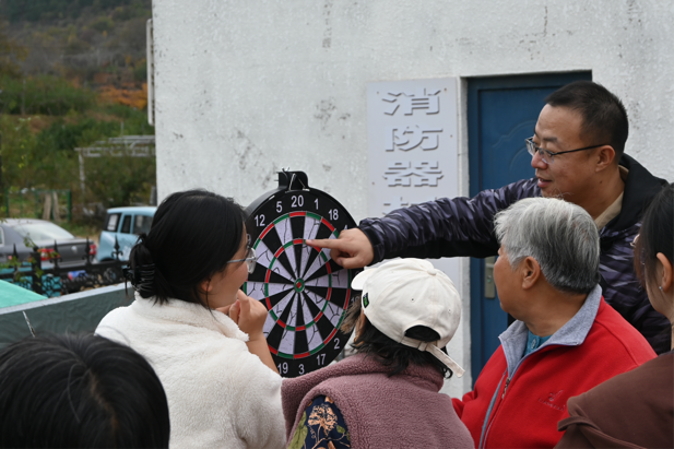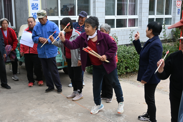 活动现场热闹非凡,松棚村百余名村民积极报名参加。趣味运动会分集体项目和个人项目,其中集体项目包括接力运乒乓球和赶猪回家;个人项目包括投壶、飞镖掷准、沙包掷准、巧拼地图,共计6个比赛项目。活动不仅考验村民们的身体素质,还提升了他们的团队协作精神和竞争意识。