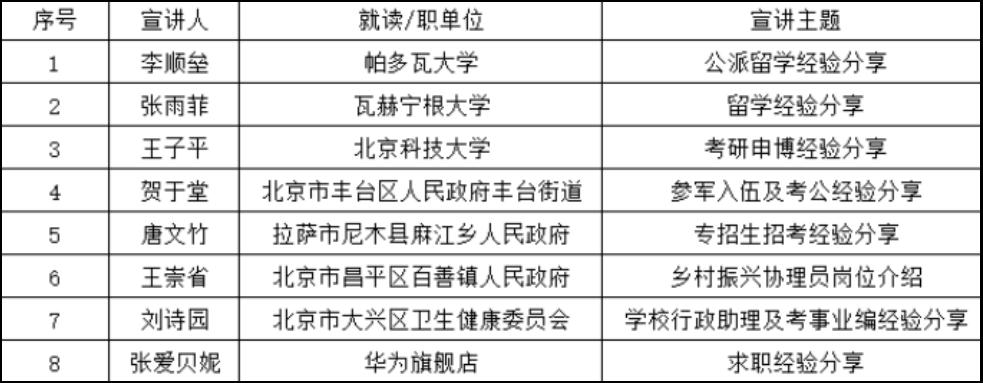 学院根据前期毕业生问卷调研结果分析毕业生就业需求6模块邀请8位优秀校友分别从出国留学考研考博考公考编参军入伍乡村振兴协理员求职就业等方面进行就业宣讲分享会涵盖学院2025届本研全体毕业生同时邀请毕业生家长参会使毕业生家长与学院就业工作同频共振