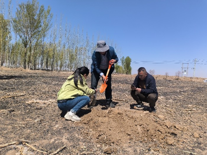 土壤改良试验区位于五原县新中公镇,是国家“十四五”盐碱地综合利用的重要示范区。应项目实施方的邀请,石生伟老师基于前期研究工作基础,为该地区盐碱地设计了系列改良方案,并安排研究生参与长期定位观测。该试验结果将与项目示范区的国内多家科研单位(中国科学院南京土壤研究所、清华大学、宁夏大学、内蒙古农业大学等)同期对比,评价不同治碱改土技术措施效果,筛选出最优的技术方案与示范路径,助力盐碱地改造利用新产品新技术的集成及示范区建设。