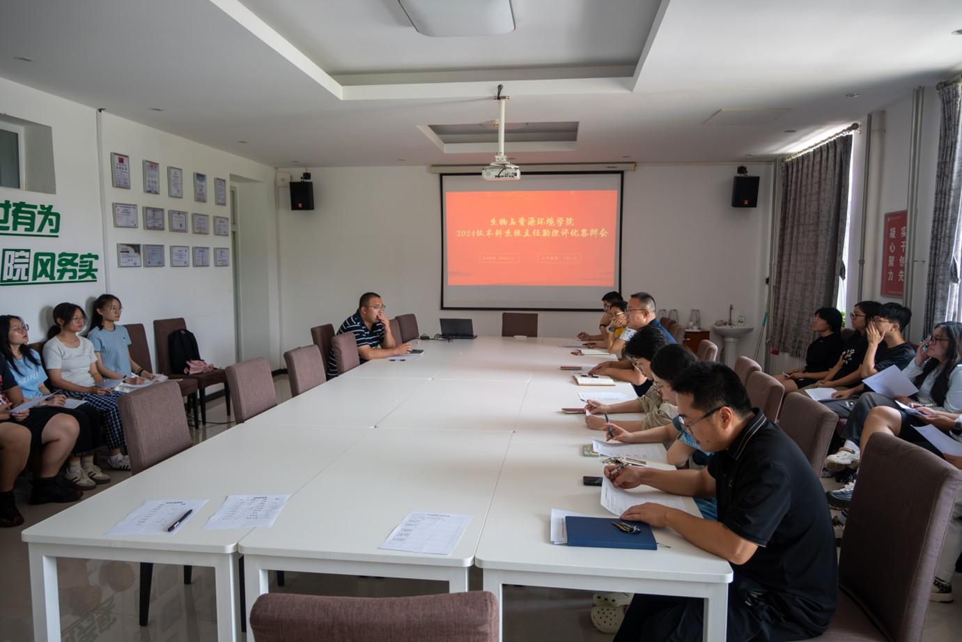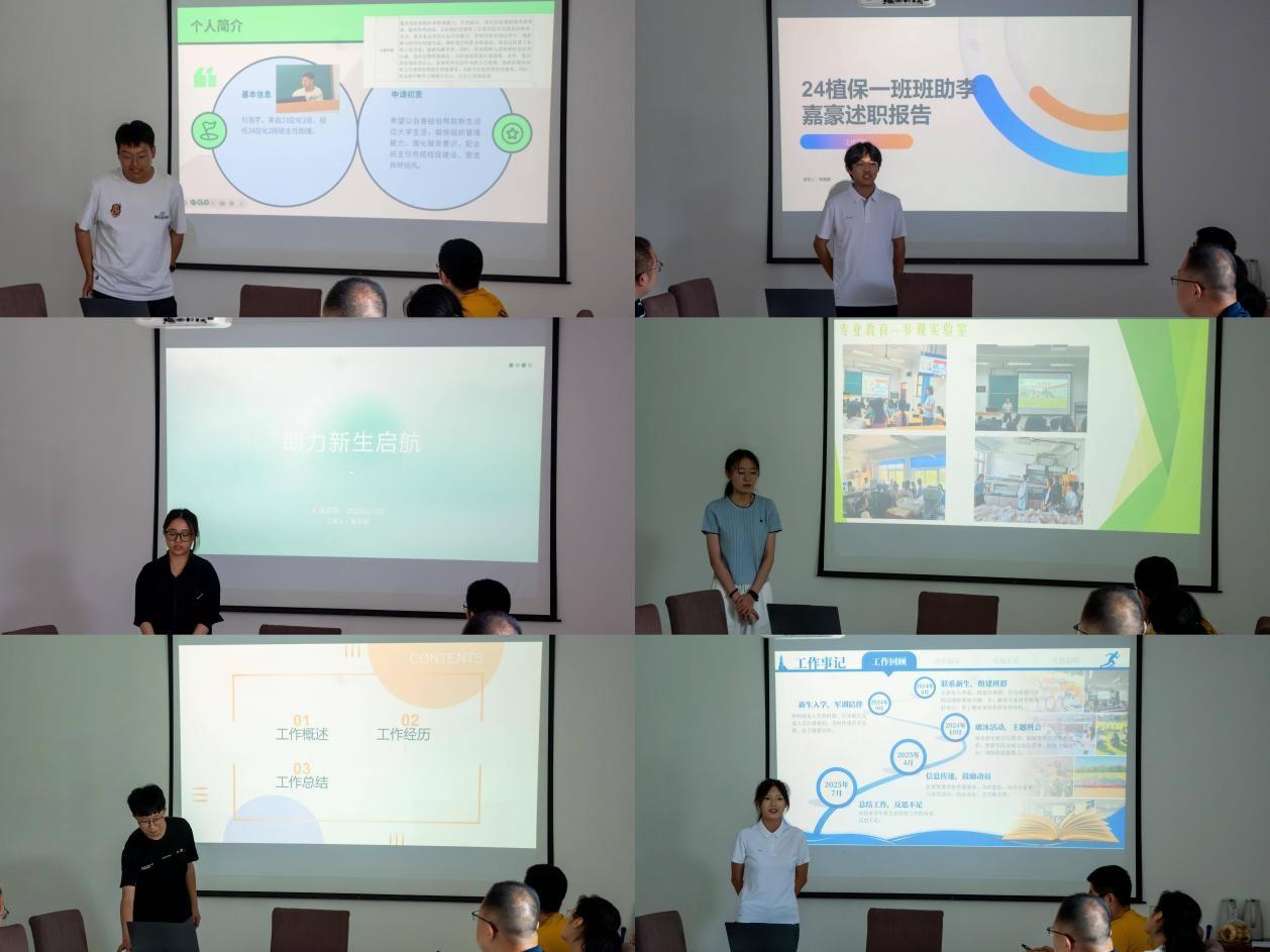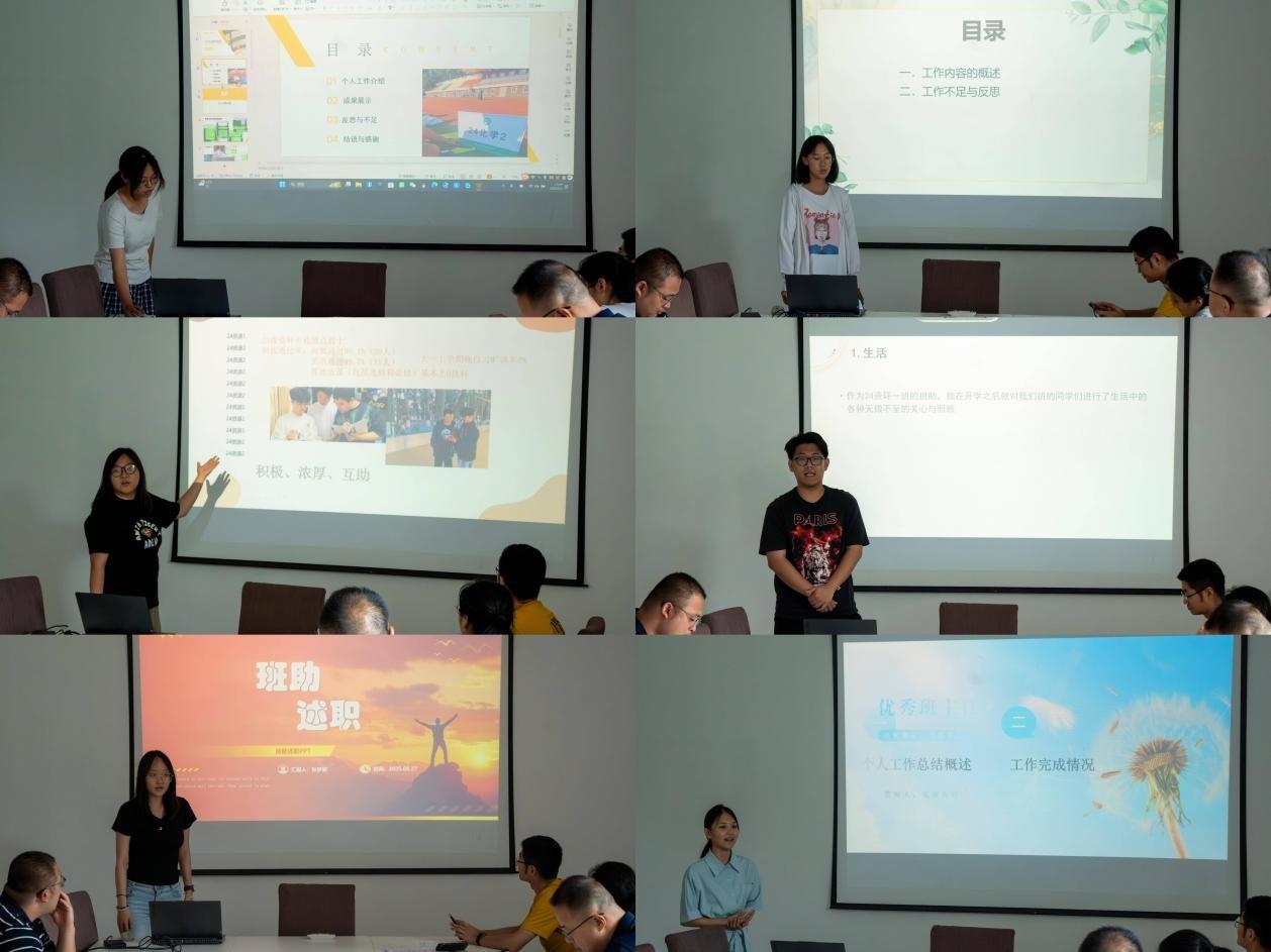 为系统总结工作经验,表彰先进典型,并促进优秀经验传承,近日,太阳成集团tyc9728在生资楼B座216会议室召开了2024级班主任助理评优工作会议。2024级全体班主任助理依次登台述职,就过去一年的工作进行总结答辩。2024级各班班主任全员参会,共同见证班助们的成长与付出。会议由2024级辅导员王俭成主持。