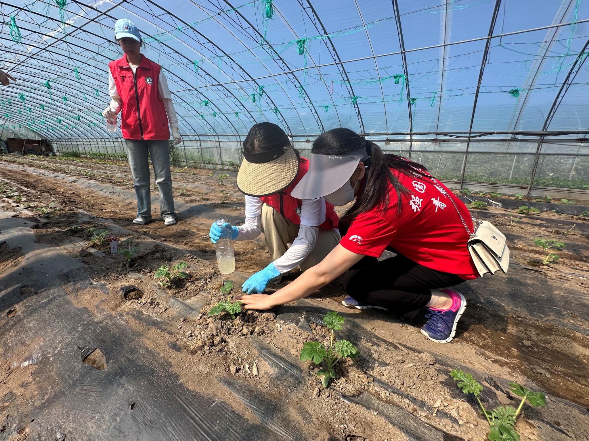 实践团成员走到田间地头与农户深入交流,发布调查问卷进行信息收集,了解了今年西瓜产量以及销售情况,并针对农户在种植过程中遇到的难点进行记录。在与农户的交谈中得知,近年来最为困扰农户生产的问题是西瓜根结线虫病。实践团成员实地进入春茬正在拉秧的西瓜大棚,对西瓜根系进行了西瓜根结线虫病害检测与评级,同时也对西瓜大棚中发生的其他病害进行了鉴定、评级与采样记录。