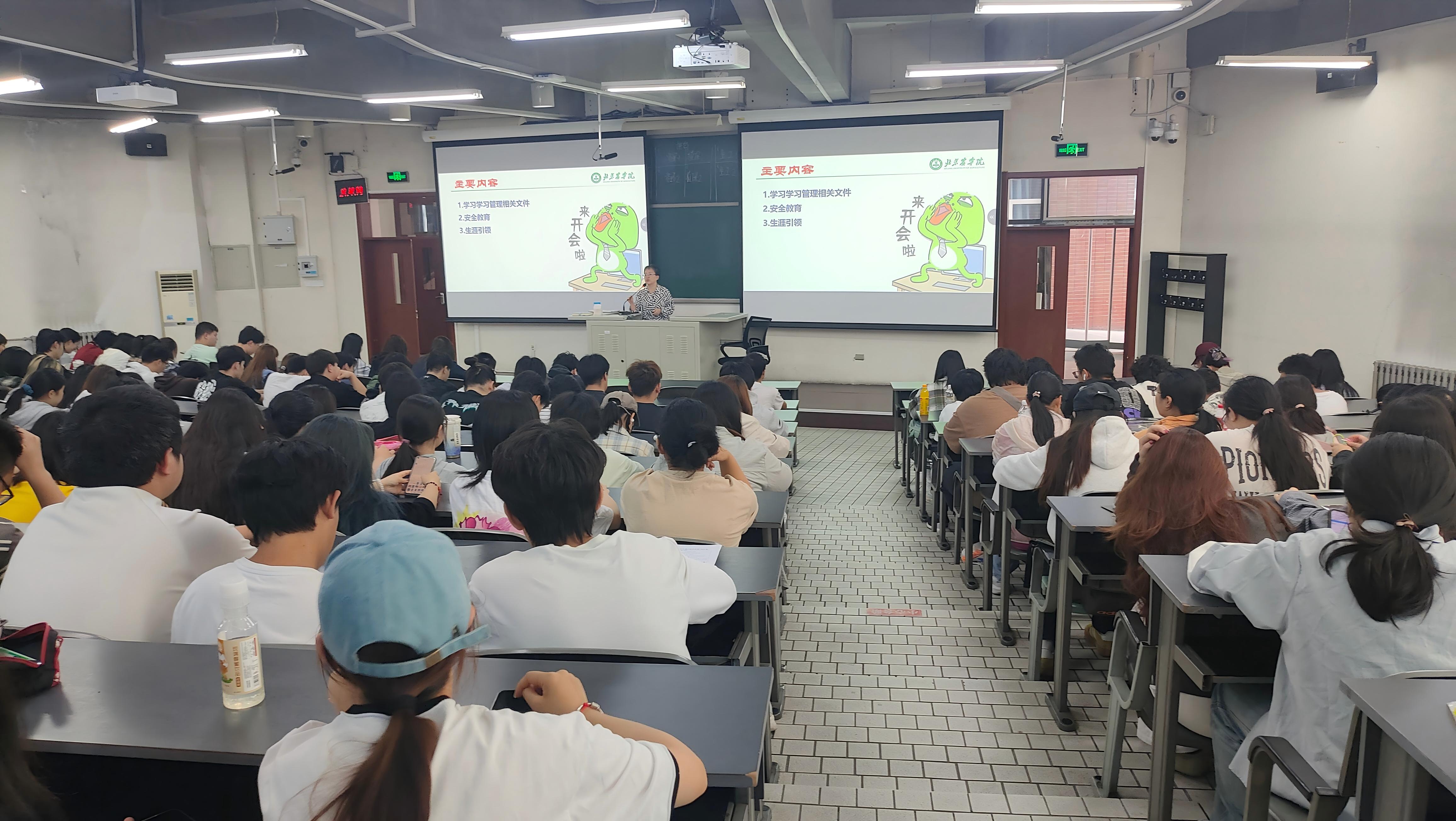 会议首先聚焦学籍管理和转专业政策,聂少杰带领大家对《9728太阳集团本科生学籍管理规定》(北农校发【2025】72号)、《9728太阳集团全日制本科生转专业实施细则》(北农校发【2025】73号)文件进行了梳理,特别对考试资格、补考、重修、免修、休学、退学、转专业等关键环节的相关规定再次重申和明确,希望同学们认真研读文件细则,树立规则意识。